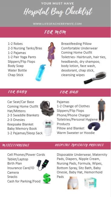 Great list! I’m definitely packing snacks this time! My other four babies were all born when the cafeteria was closed, and my husband and mom had to go out to find something that was opened!